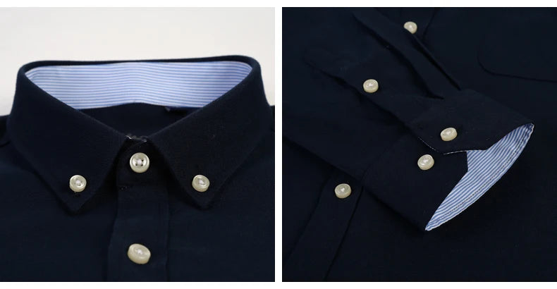 Cotton Oxford Long Sleeve Plaid Striped Casual Shirts For Men