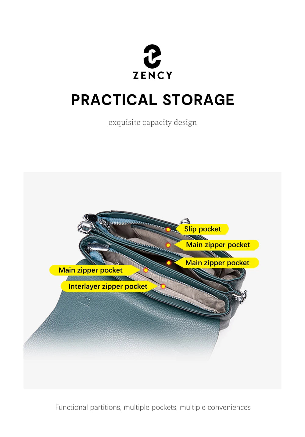 Zency Fashion Genuine Leather Top-handle Cross Body Bag For Women
